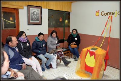Después de la Santa Eucaristía, se dio comienzo a la Vigilia con un tema expuesto por el Padre Jaime y con la activa participación de los laicos compartiendo en grupos las diferentes preguntas, analizando y exponiendo las diferentes respuestas en un plenario.