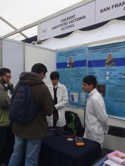 Entre el 3 y el 6 de Octubre de este año, los estudiantes Linda Hueitra Osorio del 7º año A, Eduardo García Manquel y Antonio Offermann Cantero del 2º medio A del Colegio Instituto Victoria, participaron en la FERIA NACIONAL DE LA CIENCIA Y LA TECNOLOGÍA que realiza la Universidad del Bio-Bio, Concepción. En ella la pequeña Linda, quien trabaja en la Conservación de la Ranita de Darwin, pudo exponer su proyecto de investigación en la Feria y además gentilmente fue invitada al matinal del canal 9 de Concepción, “Nuestra Casa”, donde dio a conocer junto a su profesor asesor los detalles de su proyecto. Por otro lado, Antonio y Eduardo lograron obtener un primer lugar en una de las categorías como expositores, lo que los certifica para mostrar su proyecto en la Novena Expo-Ciencias Latinoamericana ESI AMLAT 2018 en Antofagasta Chile, entre el 2 y el 6 de Julio del 2018, por lo que estos estudiantes del Colegio Instituto Victoria deberán prepararse para estar junto a demás proyectos Internacionales, y que de acuerdo a los resultados les permitiría participar en una Feria Científica a nivel mundial, en la ciudad de Dubai.