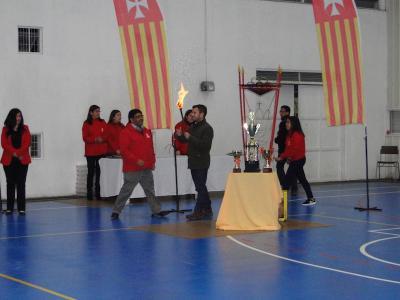 Al finalizar sus palabras el padre rector anunció que la sede de los próximos Juegos será el Colegio Instituto Victoria y entregó simbólicamente la antorcha con el fuego representativo de los juegos mercedarios.