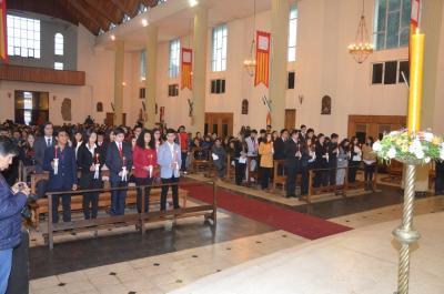 Antes de recibir la bendición final, se acercó una pareja de jóvenes recién confirmados, para entregar un Cirio encendido a dos jóvenes que recién comienzan su catequesis de confirmación, en señal que hagan suyo el compromiso y se sientan apoyados por esta luz que es Cristo Jesús, el que los acompañará y guiará en este recorrido de aprendizaje y en el encuentro con “Él”.