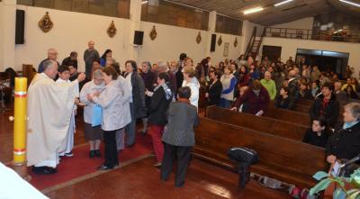 Antes de finalizar le fue entregado un galvano a la señora Milagro Aedo Barra, en reconocimiento a su entrega y servicio en la Capilla.