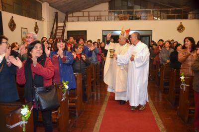 En el marco de la Santa Misa celebrada, y que contó con la presencia de las fieles de todas las comunidades mercedaria de Chillán, Monseñor Pellegrin comenzó entregando un saludo a los presentes de esta comunidad Cristiana y en especial a la Comunidad Mercedaria que ya comenzó a vivir el inicio del año Jubilar.