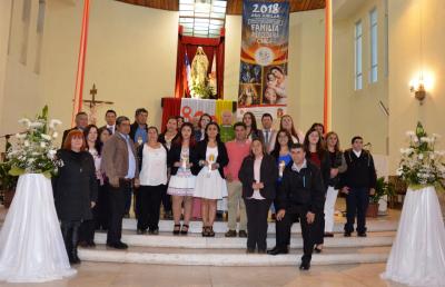La celebración fue presidida por el Párroco Jaime Nawrath. Fue una Jornada marcada por la emoción y espiritualidad, donde el padre Jaime, les hizo una invitación a estos nuevos hermanos, a comprometerse, para que vayan y lleven la palabra de Dios, que sean unos verdaderos testigos, que sigan creciendo en la Fe, que vivan una vida auténtica mente cristiana, anunciar la buena nueva y denunciar el pecado, apoyados en la continua oración y la amistad íntima con Jesús.