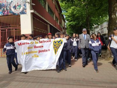 En esta peregriación participaron alumnos de Pre kínder a 3 medio, apoderados, profesores y personal administrativo que con espíritu festivo caminos desde el colegio hasta la cima del cerro donde se encuentra el santuario.