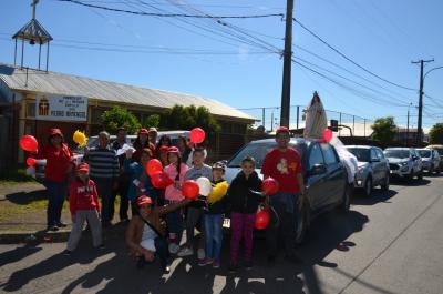 El recibimiento en la Sede Parroquial comenzó con la bienvenida a la imagen con gran alegría y emoción de parte de los fieles de la parroquia y hermanos en la fe de las diferentes comunidades, entrando en andas, llevada por un matrimonio junto a sus hijos y escoltada por niñas de Catequesis de iniciación a la vida Eucarística.