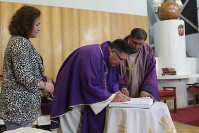 El Administrador Apostólico de Valparaíso, monseñor Pedro Ossandon, presidió la eucaristía en la que asumió como párroco de Quillota el padre Edgardo Arriagada. Forma aprte de la comunidad el padre Guillermo Cartes.