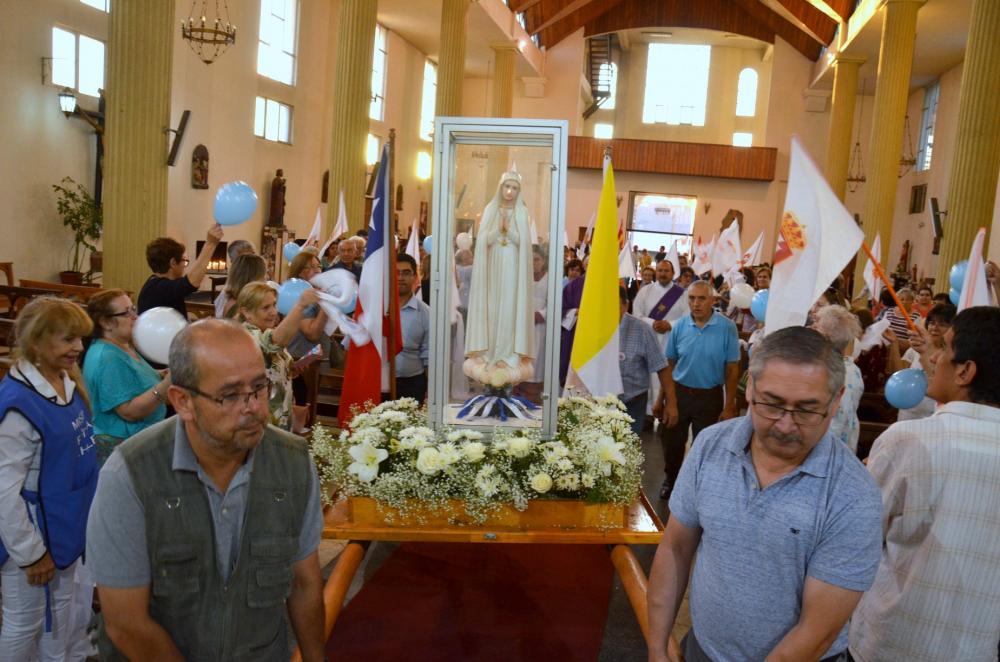 La imagen de la Virgen de Fátima que lleva años peregrinando por el mundo, desde Portugal, llegó a la Diócesis de Chillán el 24 de febrero pasado para recorrer los distintos decanatos para traer su mensaje de paz, la hemos recibido y acompañado, con mucho cariño sabiendo que para nosotros, María es la Madre Dios.