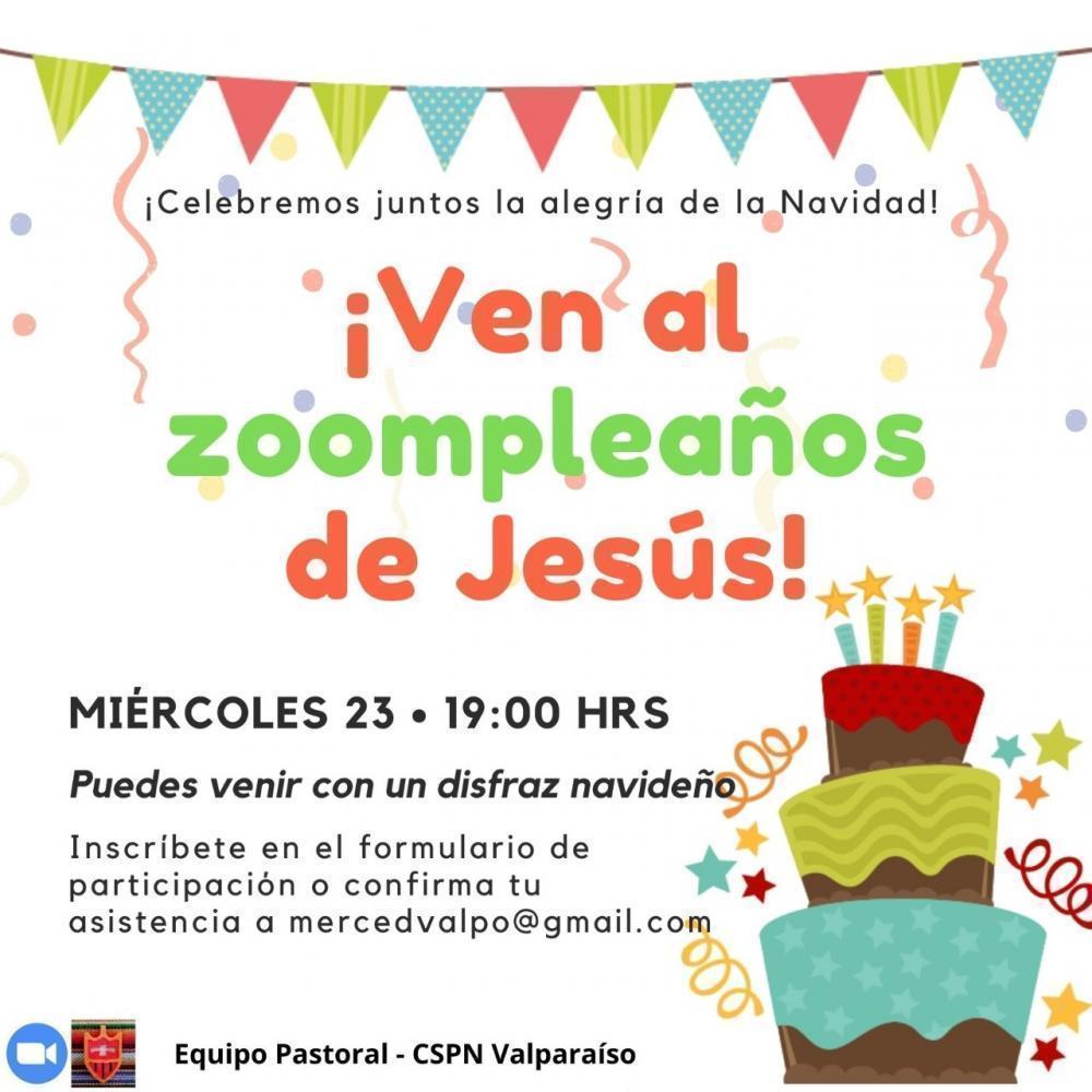 La comunidad educativa de Valparaíso preparó un encuentro virtual en la plataforma Zoom “Ven al zoompleaños de Jesús”. Este encuentro se realizará el 23 de diciembre a las 19:00 horas y te puedes inscribir en el siguiente formulario:
