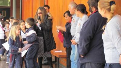 Entre aplausos, y reconocimientos, los alumnos y alumnas agradecieron el trabajo cotidiano y silencioso que hacen los auxiliares para lograr mantener el Colegio limpio, ordenado y cuidado.