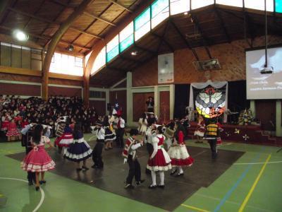 Como es tradición cada año se celebra el Inicio de la Independencia de Chile con un Acto que incorpora la Danza, la Poesía, la Expresión Plástica y el Documento Histórico, los cuales fueron preparados por los profesores: Sra. Rosalba Sanhueza H., sra. Andrea Contreras E., sr. César Pérez H. y del sr. Miguel Llanos J. En este acto estuvieron presentes el Rector, Fray Rodrigo Aguilar G., la Directora, señora Anahy Huenchullán P., Jefe de UTP, señor Víctor Figueroa F., la Coordinadora de Primer Ciclo Básico, la señora Ana María Lagos S., profesores, asistentes y estudiantes desde Pre-Kinder a 8º año básico. El locutor del Acto fue el profesor de Educación Física, señor Blas Manuel Valenzuela.