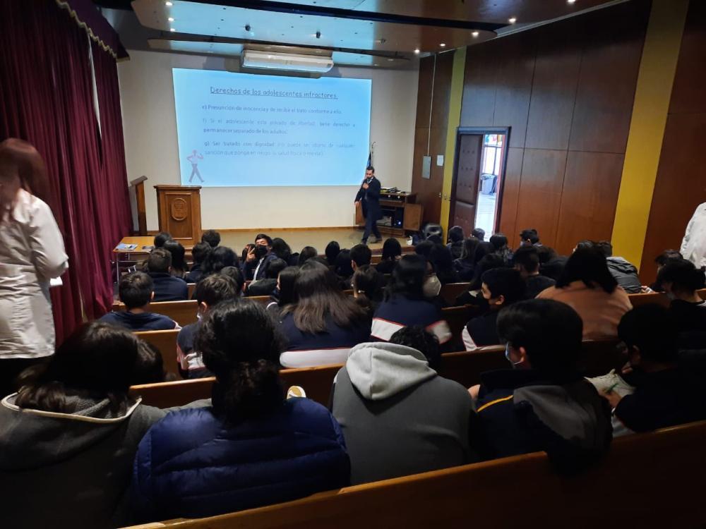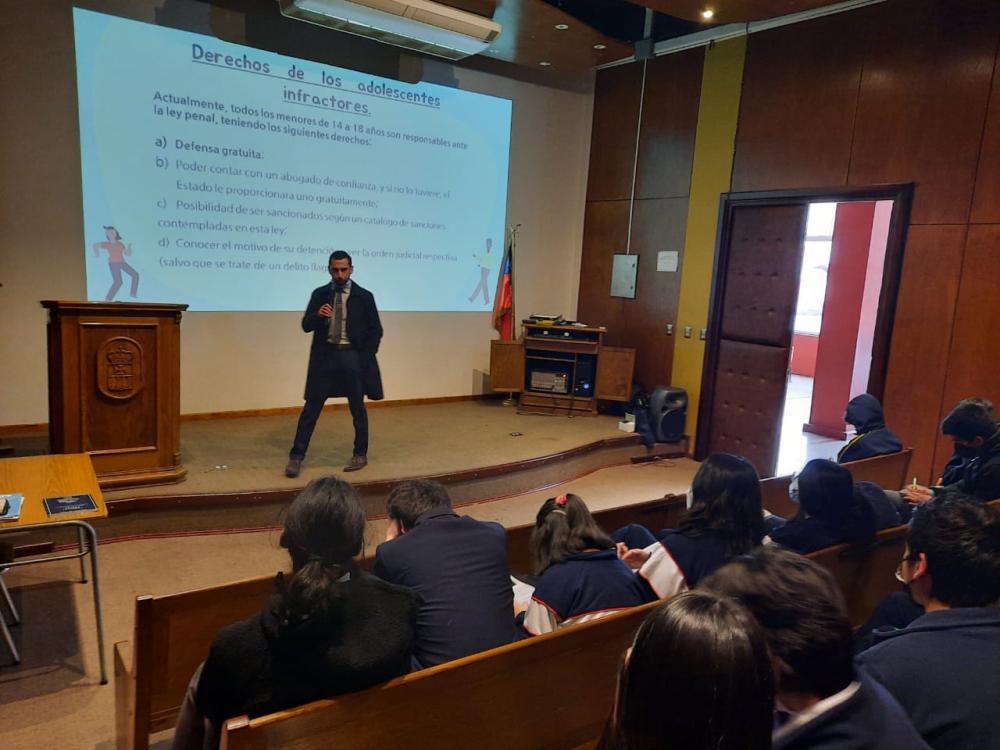 Este lunes 23 de mayo, los estudiantes de 1° Año Medio del Colegio San Pedro Nolasco de Concepción participaron de una charla sobre la Responsabilidad Penal Adolescente, donde el abogado docente de la Universidad San Sebastián y exalumno del colegio Felipe Andrade, dictó la charla y contestó las preguntas que surgieron desde la comunidad.