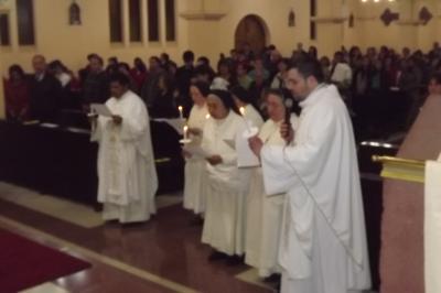 Ya en la penumbra, los fieles arribaron hasta la Parroquia de Nuestra Señora de La Merced, donde esperaba gran cantidad de feligreses para dar inicio al servicio Eucarístico.