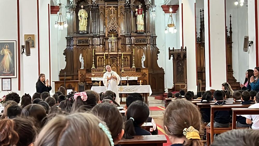 El viernes 03 de marzo se dio la bienvenida a la comunidad escolar de Concepción para dar inicio al año académico 2023. Con la alegría del reencuentro, las esperanzas y desafíos para este año 2023 se celebró este lunes una Eucaristía, para los más grandes, y una liturgia para los más pequeños, ambas presididas por el padre Carlos Muñoz, vice rector del Colegio.