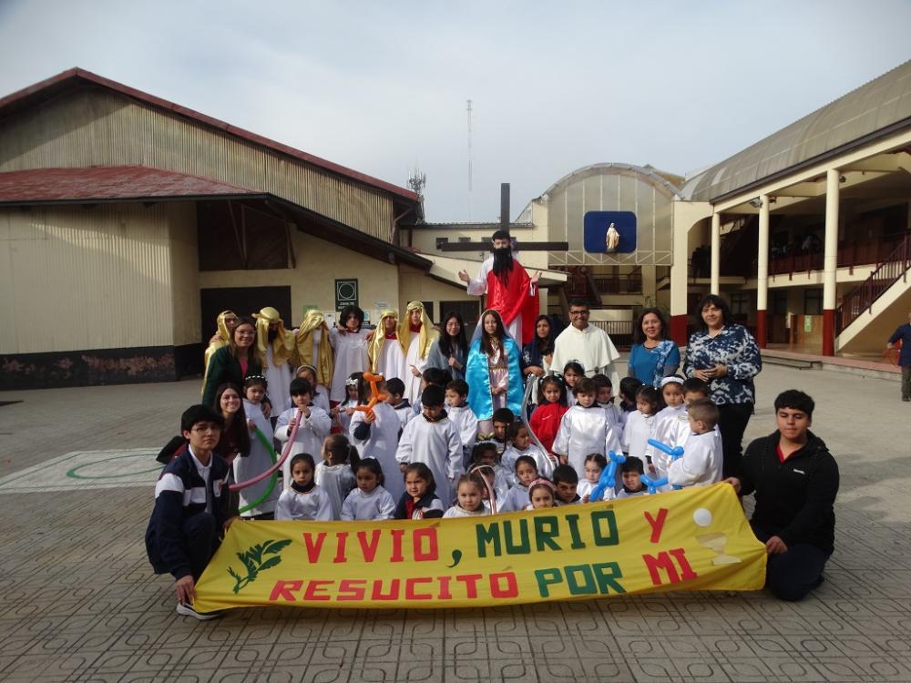 Toda la comunidad escolar hemos celebrado en una hermosa liturgia la alegría de la Resurrección de nuestro Señor Jesucristo. Es el mensaje de esperanza y de paz que nos anuncia que la vida vence a la muerte y la oscuridad. Tal como nos dice la canción: Cristo el Señor resucitó su amor fue más fuerte que la muerte. Feliz pascua de resurrección!!!!