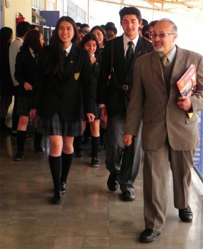 El alumno Pablo Villarroel de Cuarto Medio pronuncia palabras de agradecimiento de parte de su curso a Dios por el gran momento que están viviendo en este día. Pablo expresa a los presentes que Dios siempre está presente en nuestras vidas, de una u otra forma, siempre está en el interior de cada uno; pero hay que saber reconocerlo y permitirle que se mantenga vivo a lo largo de nuestras vidas para que de esta forma podamos crecer y triunfar en nuestros proyectos.