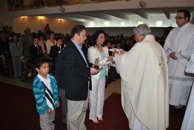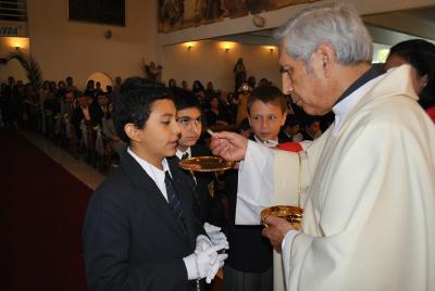 La Ceremonia estuvo marcada por un profundo ambiente de oración y de alegría en el que los cientos de familiares y amigos acompañaron a los niños en este paso tan importante de sus vidas con el Señor. El Padre Rector, Fray Carlos Anselmo Espinoza, recalcó lo hermoso del encuentro con Jesús que llena de sentido toda la vida y la importancia de los padres como primeros catequistas de sus hijos.