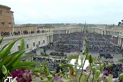 Después de presidir la celebración de la Santa Misa de Pascua, en una plaza de San Pedro repleta de peregrinos y decorada para la ocasión con flores procedentes de Holanda, el Pontífice recorrió la plaza en papamóvil, prodigando saludos, sonrisas y bendiciones a los numerosos presentes, llegados a la plaza no obstante la lluvia.