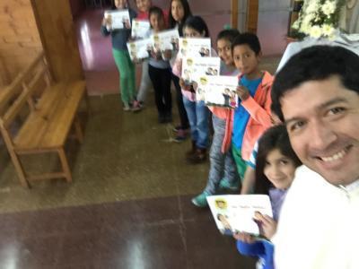 Con alegría grandes y chicos se interesaron en saber más sobre la vida de Nolasco, especialmente los niños de la catequesis quienes recibieron de regalo un libro con láminas de la vida de San Pedro Nolasco editado por la Provincia este año en preparación al jubileo de la Merced.