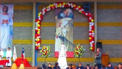 Posteriormente el Profesor de religión Sr. Luis Iturra invitó a los cursos reunidos en el gimnasio a responder dos preguntas esenciales para este día: ¿Cuáles son las esclavitudes que tienen como curso? y ¿qué acción deben realizar para liberarse? Un representante de cada curso presentó las ideas grupales y ofrecieron una ofrenda a la Virgen de La Merced, como compromiso de las acciones a seguir.