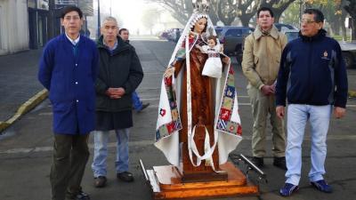 La bella imagen de la Virgen fue acompañada por la banda del Colegio, en tanto la comunidad educativa del Instituto Victoria recibía a nuestra Madre con plumeros y aplausos en la calle cercana al colegio y parroquia.