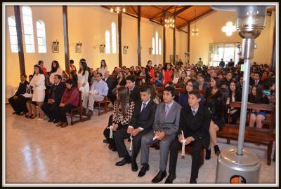 La Eucaristía fue presidida por el párroco padre Jaime Nawrath, el cual en su homilía, recordó la importancia de los sacramentos y de los padres siendo los primeros educadores en la fe. Al finalizar la celebración dio gracias y pidió a Dios que guíe a estos jóvenes en el camino de la Fe y que ellos den testimonio con su compromiso permanente con Cristo Jesús en el diario vivir acompañados por sus padres y padrinos, acompañados por nuestra Santísima Virgen de la Merced.