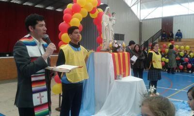 Posteriormente en el gimnasio del establecimiento se vivió una liturgia con los alumnos de pre kinder a 2° básico. Durante la tarde se realizó una procesión dentro del gimnasio con todo el colegio.