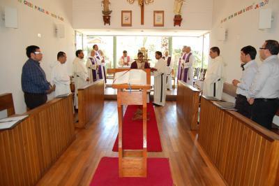 La Eucaristía fue presidida por el Padre Provincial, fray Ricardo Morales Galindo y concelebrada fray Mario Salas, Maestro de Estudiantes, fray Héctor Guerrero, fray Rodrigo Aguilar, fray Carlos Anselmo Espinoza, fray Edgardo Arriagada, fray Carlos Sanhueza y fray Jorge Astroza, quienes acompañaron a los jóvenes en el significativo momento de su proceso formativo.