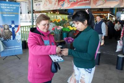 Desde las 08:30 de la mañana del sábado 10 de octubre, se congregaron en la Iglesia de la Recoleta Franciscana para comenzar esta gran misión, esta se inicia con la liturgia de envío, presidida por el decano Pbro. Ignacio Gramsch. Una vez finalizada esta celebración, cada grupo se distribuyó en cuatro puntos estratégicos de la Vega Central, en ellos se instalaron pequeños altares para orar, cantar y mostrar breves representaciones artísticas, mientras un grupo acompañado por un diácono o sacerdote bendijo los locales. Se compartió y oró con los trabajadores.