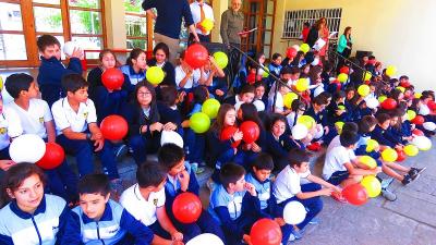 Se inició con un canto mariano animado por todos los niños mientras acogían a la Virgen Misionera con cientos de globos, luego nuestra Directora Srta. María Soledad Rivera saludó y oró a nuestra Madre para culminar con la proclamación del Magnificat por parte de los jóvenes de la Pastoral Juvenil, quienes fueron desplegando lienzos con los diferentes valores vividos por nuestra Madre María y que ellos quieren llevar hoy a la sociedad por medio de la educación.