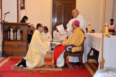 El padre Ricardo Morales, superior provincial, presentó el postulante al diaconado a monseñor Chomalí.