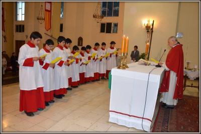 En su homilía el Padre Jaime Nawrath los invita a ser testigos del Señor y dar ejemplos antes los demás con su compromiso en su diario vivir en los diferentes ambientes. También, les habló sobre la importancia de actuar coherentemente, entre su servicio al altar y su vida familiar, escolar y con sus amigos.