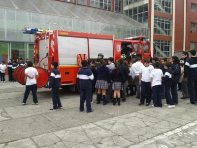 Los Bomberos se presentaron con un Carro, que en el segundo recreo se estacionó al centro del patio del Colegio, siendo la gran novedad para los estudiantes.