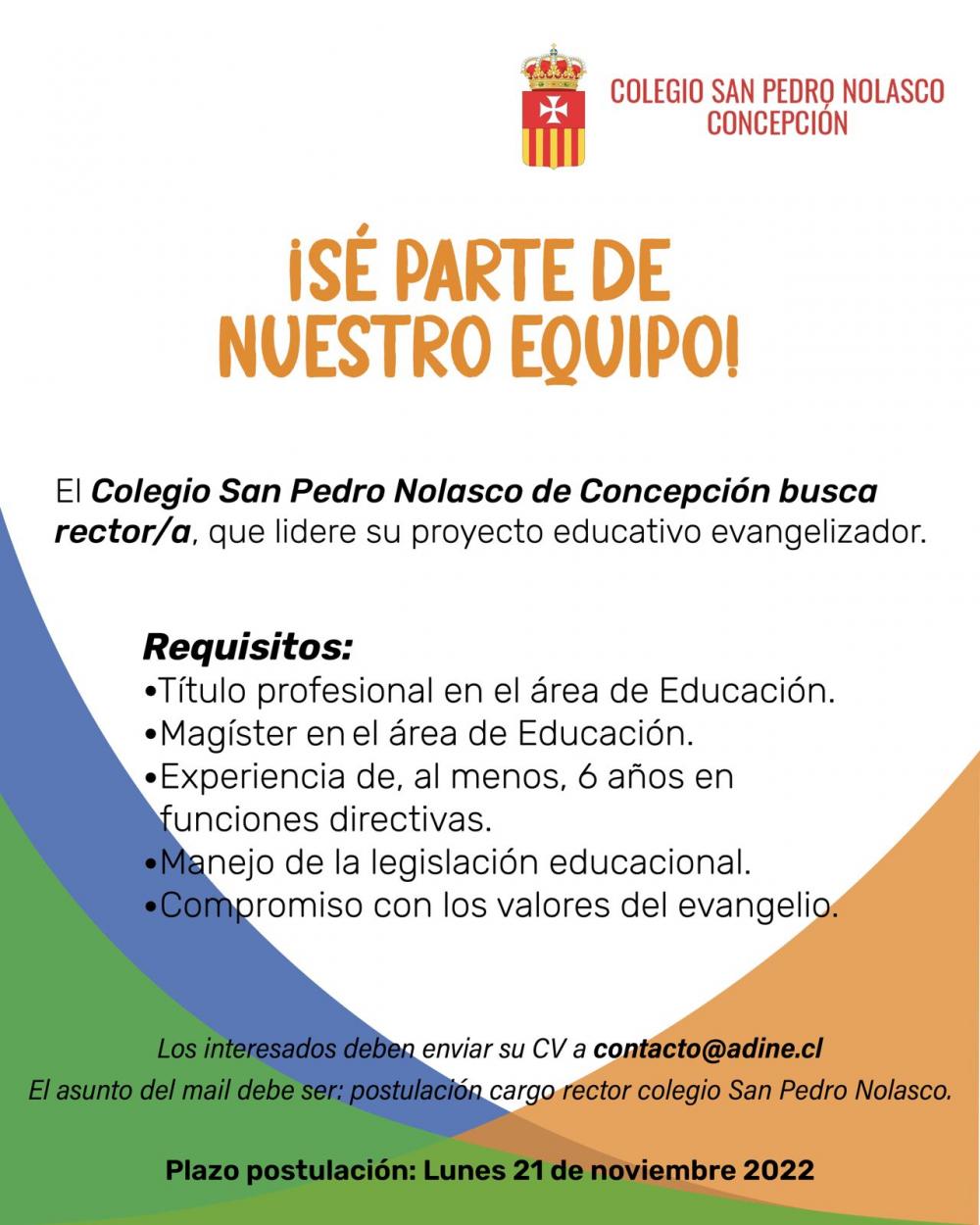 Abierta la postulación al cargo de rector/rectora del Colegio San Pedro Nolasco de Concepción