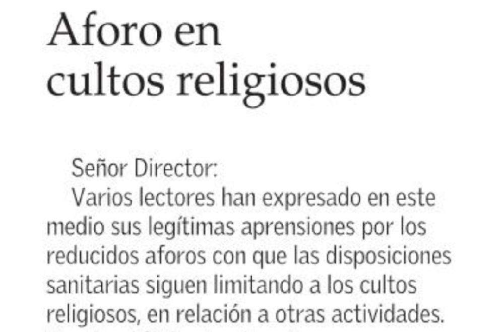Los obispos ante los aforos en cultos religiosos durante la pandemia